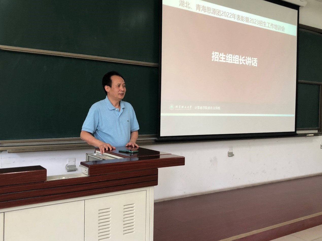 为进一步做好2023年招生宣传工作,全方位提升思源团队力量,6月7日中午,计算机学院于良乡校区理科教学楼102教室组织召开湖北、青海两省思源团队2023年出征动员暨招生培训会。湖北招生组组长、计算机学院院长王国仁,计算机学院党委副书记、副院长奚英伦,副院长赵宏宇,湖北招生组副组长韩宝玲,各区域组长罗霄、宿红毅、张艳、秦宏超、张奥千及领航老师闫波等出席了本次会议,120余名思源学生参与了本次会议。会议由计算机学院招生干事柳文艳主持。