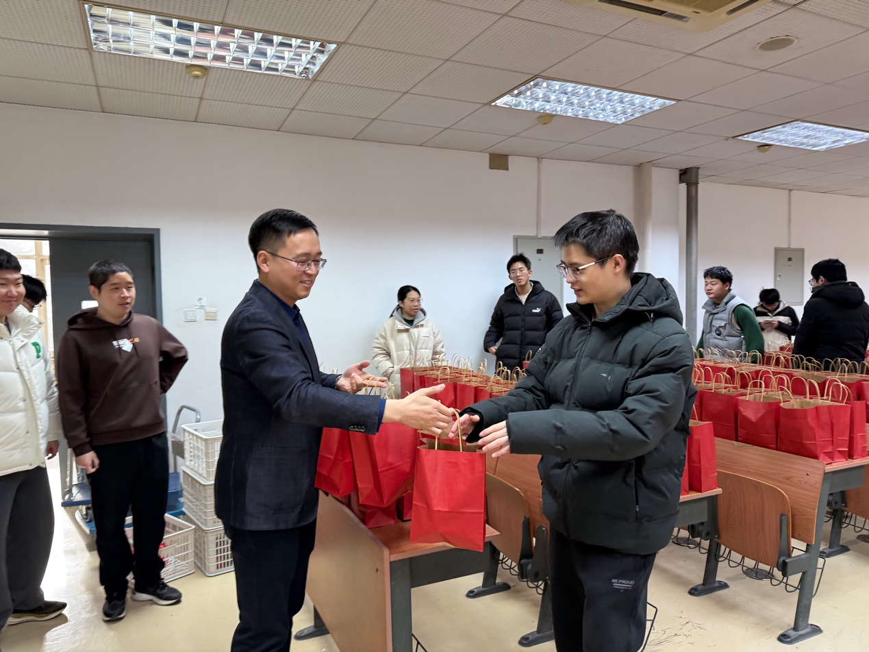 12月19日,为关爱备考学子、缓解备考压力,计算机学院学生工作办公室为2021级考研学子精心组织了一场温馨的慰问会。学院党委副书记、副院长包成刚和学生工作办公室主任史继筠与考研学生亲切交流,并为每位学生送上贴心的慰问礼包,表达学院的深切关怀与美好祝愿。