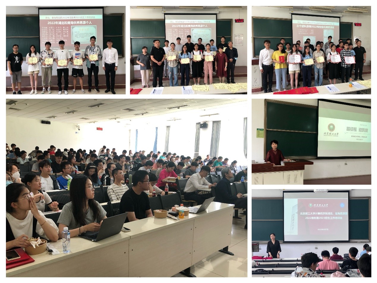 为进一步做好2023年招生宣传工作,全方位提升思源团队力量,6月7日中午,计算机学院于良乡校区理科教学楼102教室组织召开湖北、青海两省思源团队2023年出征动员暨招生培训会。湖北招生组组长、计算机学院院长王国仁,计算机学院党委副书记、副院长奚英伦,副院长赵宏宇,湖北招生组副组长韩宝玲,各区域组长罗霄、宿红毅、张艳、秦宏超、张奥千及领航老师闫波等出席了本次会议,120余名思源学生参与了本次会议。会议由计算机学院招生干事柳文艳主持。